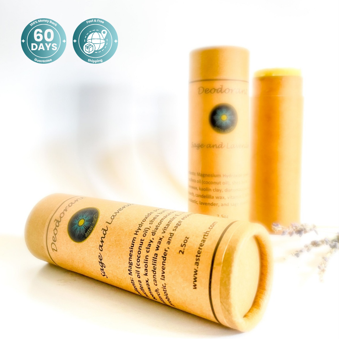 Magnesium hydroxide powder, cocoa butter, kaolin clay, bentonite clay, diatomaceous earth, Zea Mays (corn) powder, MCT coconut oil, Shea butter, beeswax, rice bran oil, vitamin E, lavender, and sage essential oils, probiotics